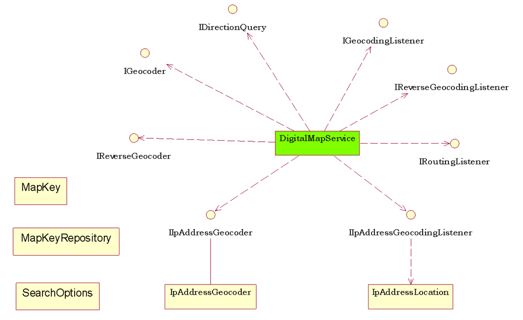 DigitalMap introduces Map Services like Geocoding, Reverse Geocoding and Routing service. It supports incorporate different Map Services implementation.